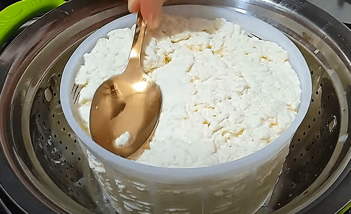 Через хвилину вже можна викладати сир у форму. Якщо спеціальної форми немає, підійде звичайний друшляк з дрібними отворами.