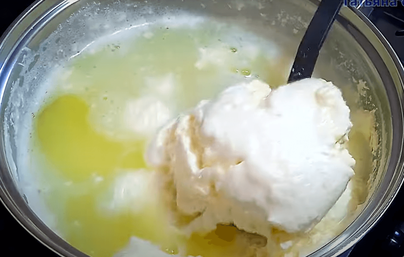 Щойно пінка піднялася, вимикаю вогонь. У цей момент вливаю заздалегідь підготовлений 9% оцет. На 6 літрів молока беру 120 мл оцту. Одразу видно, як сир починає відділятися від сироватки. Якщо сироватка має жовтуватий колір, усе вдалося. Якщо ж залишається мутно-білою, значить, треба додати ще трохи оцту.