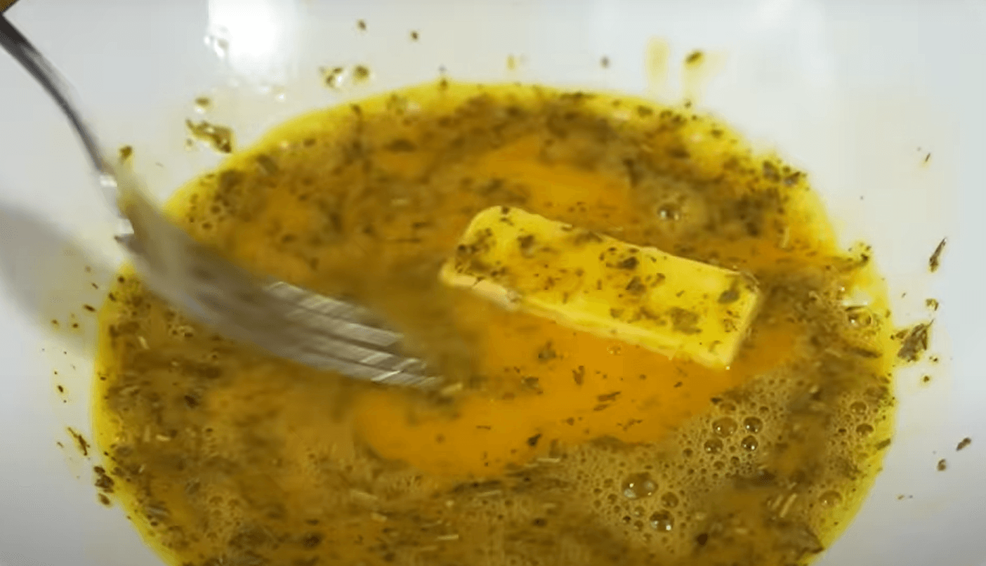 У миску вибиваємо яйце, додаємо прованські трави, сіль і перемішуємо вилкою.