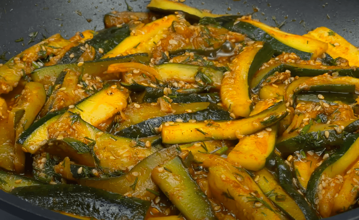 Додаю нарізану зелень кропу, перемішую і готово! Смачні і ароматні кабачки для ідеального обіду чи вечері.