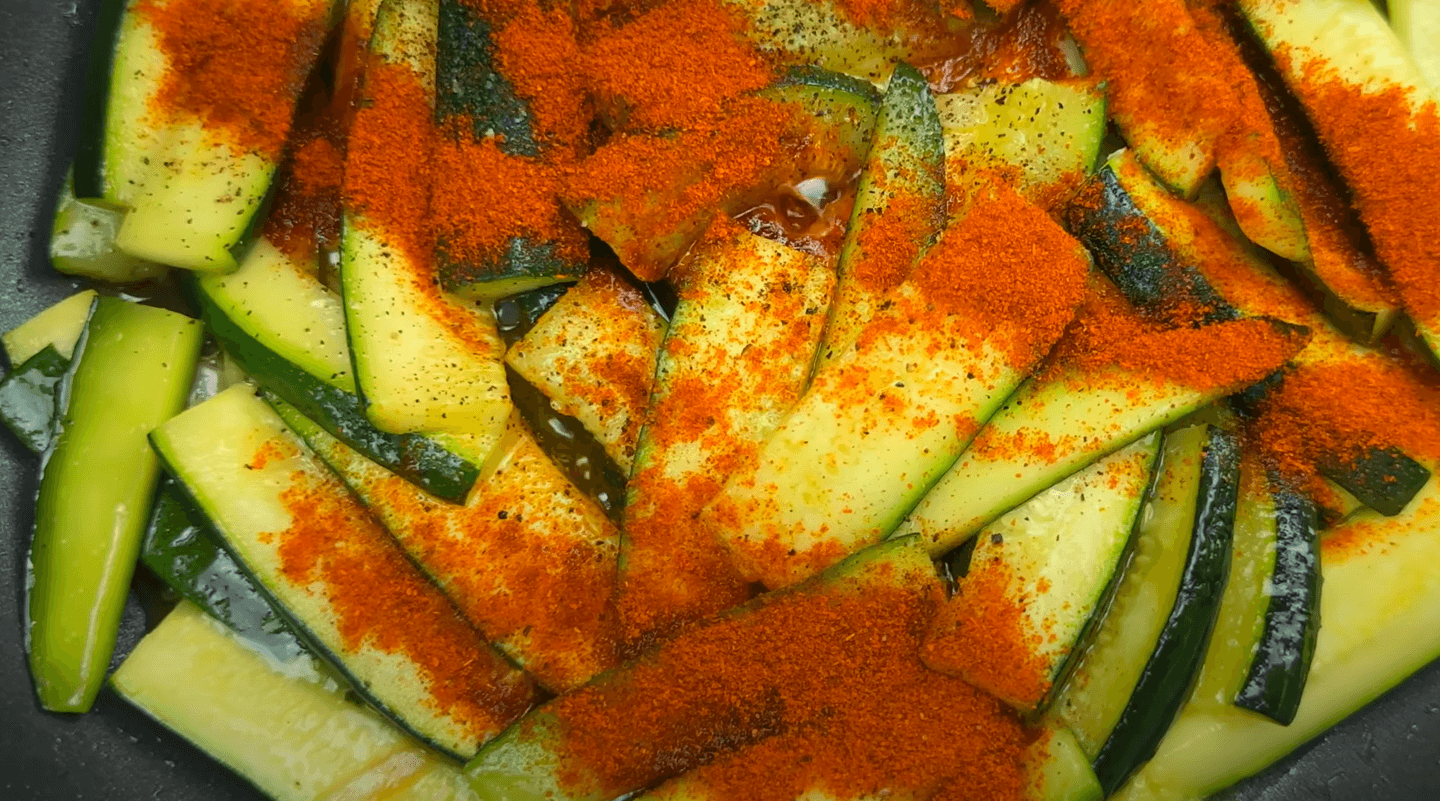 Кабачки нарізаю скибочками, солю, перемішую і залишаю на 15 хвилин.