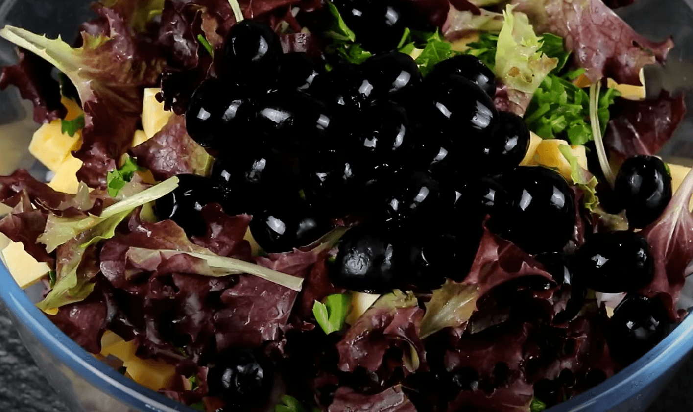 Додаємо оливки, сіль за смаком, лимонний сік і заправляємо олією.