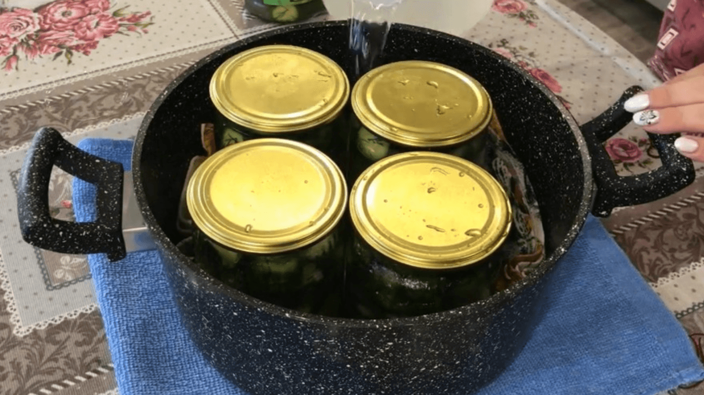 Помістіть банки у каструлю з водою. На дно каструлі покладіть рушник, щоб банки не стикалися з дном.