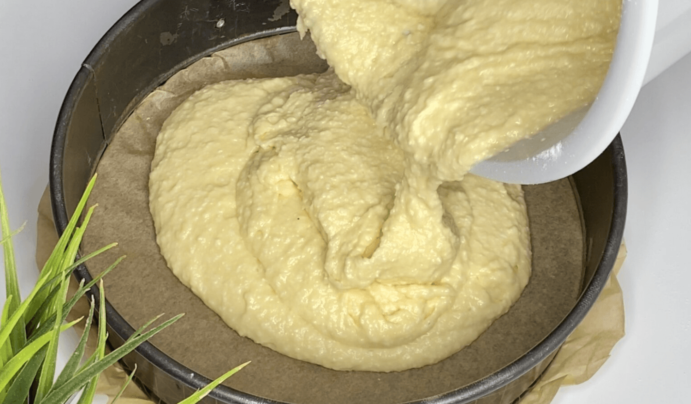 Тісто готове, перекладаємо його в застелену пергаментом форму, у мене форма 24 сантиметри в діаметрі.