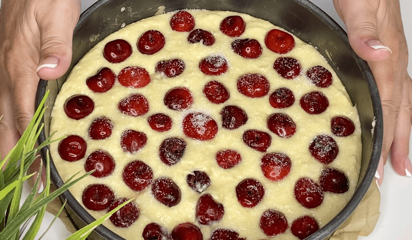 Зверху викладаємо цілі ягоди вишні, попередньо видаливши з них кісточки.