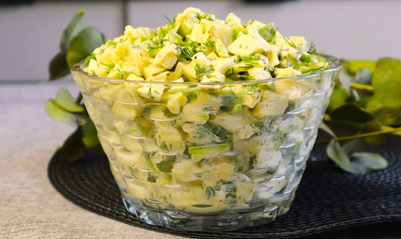 Салат з молодого кабачка з яйцями та сирком – це легка, хрустка і дуже незвичайна страва, яка приємно дивує з першого шматочка!
