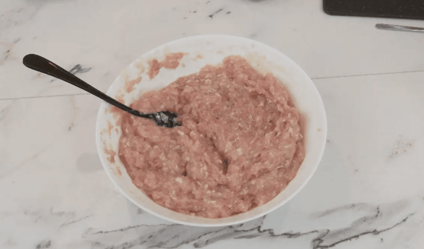 Тепер додаємо окріп, 50 мл, якщо фарш не соковитий можна додати ще. Це ще одне правило соковитої начинки. Начинка готова.