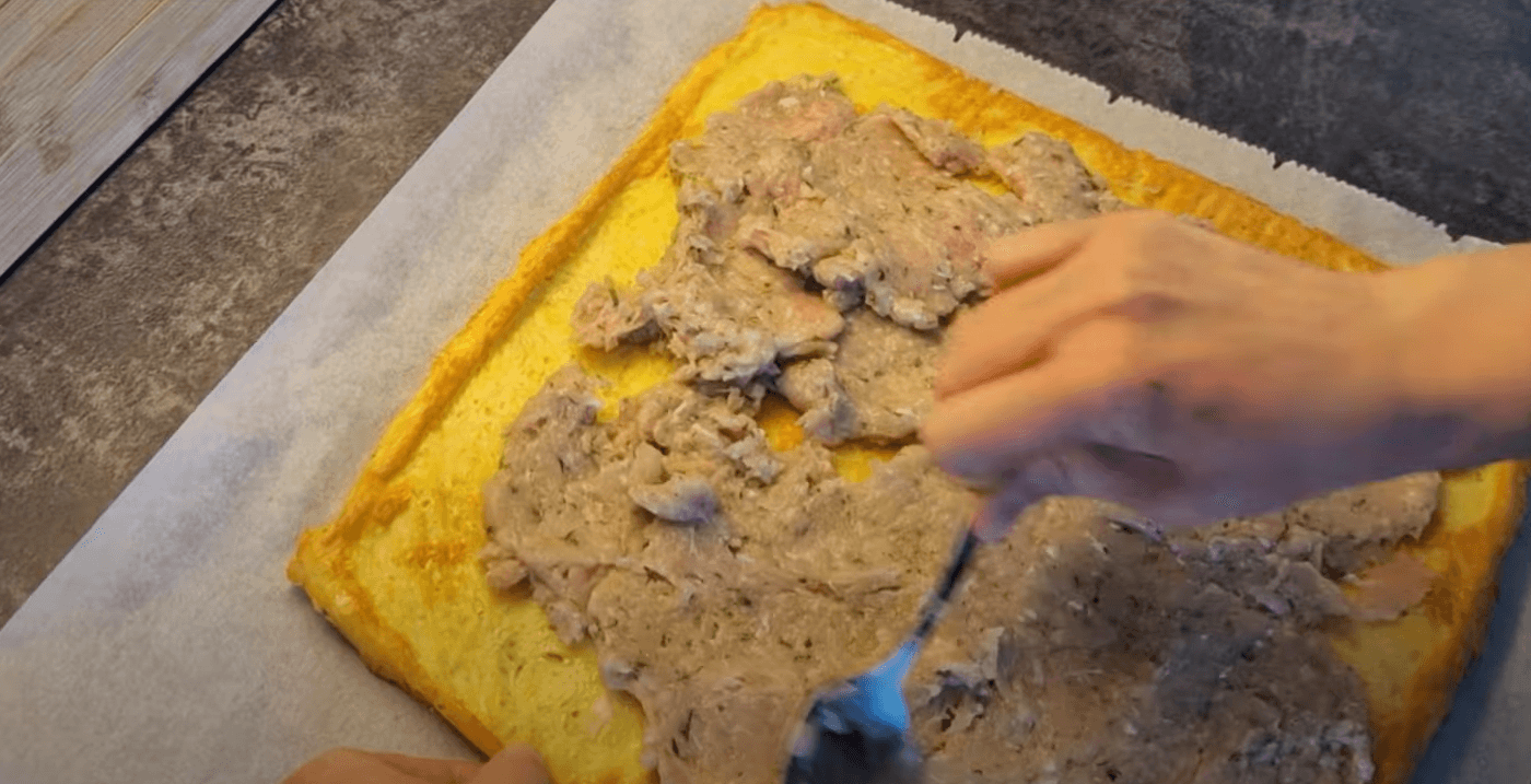 Завертаємо в сирний рулет і ставимо в розігріту духовку до 180 градусів на 40 хвилин.