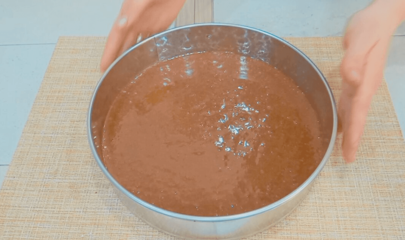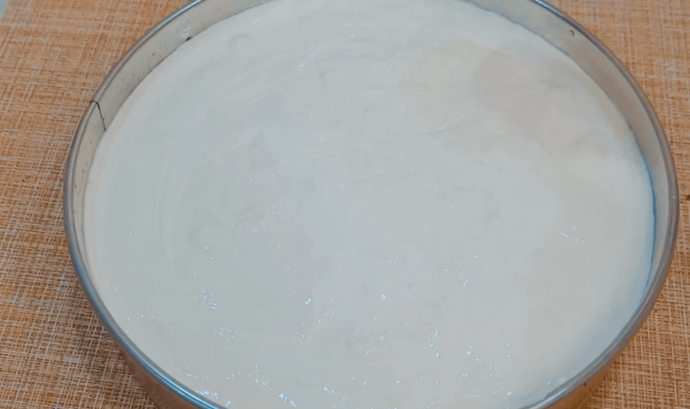 Виливаємо тісто в роз’ємну форму, попередньо вистеливши дно форми пекарським папером, діаметр моєї форми 23 см.