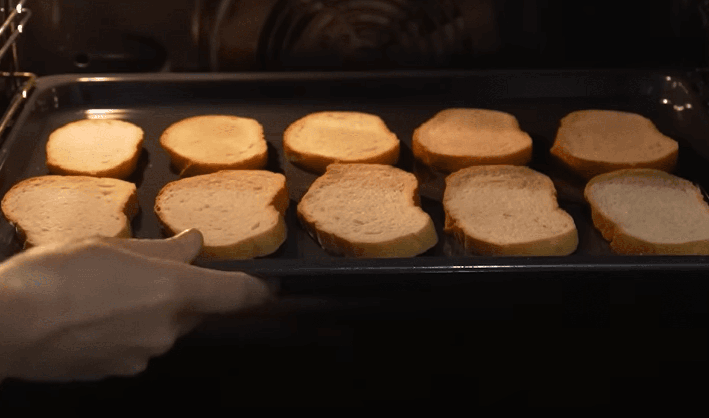 Сушимо приблизно 8-10 хвилин. Також батон можна підсмажити у тостері.