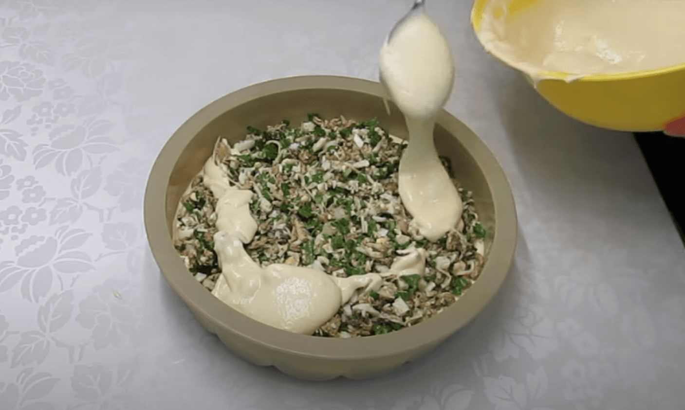 Начинку також можна замінити на м’ясну, грибну або просто яйця із зеленою цибулею та сиром змішати.