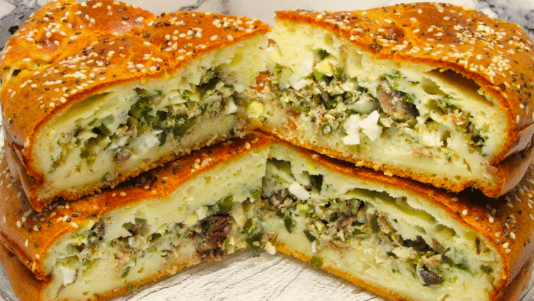 Заливний пиріг з рибними консервами. Ідеально смакує з легким овочевим салатом чи з супом або зеленим борщем. Начинку також можна замінити на м’ясну, грибну або просто яйця із зеленою цибулею та сиром змішати. Рецепт, який підкорив моє серце.