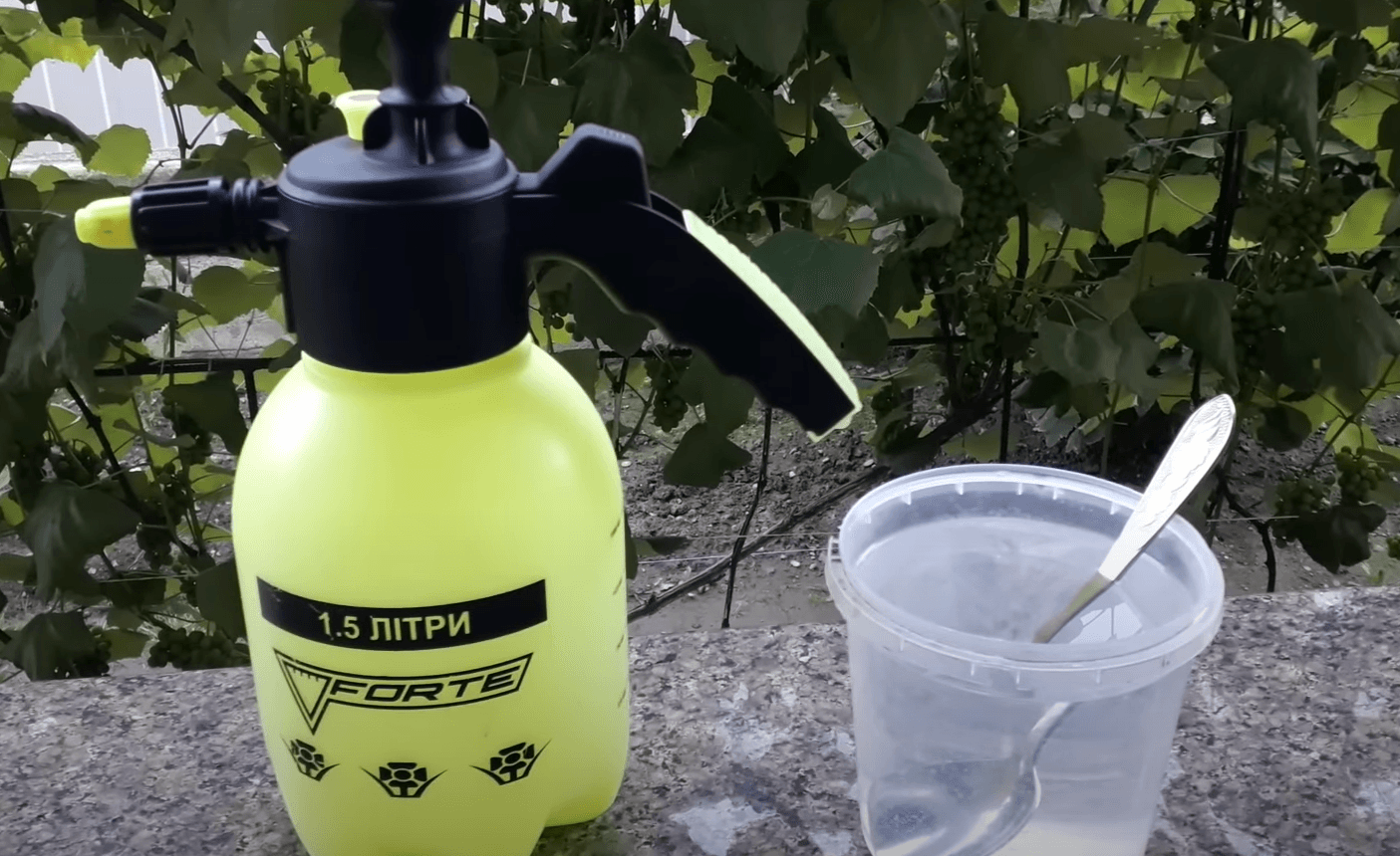 Заливаємо розчин у пульверизатор і обробляємо листя огірків знизу.